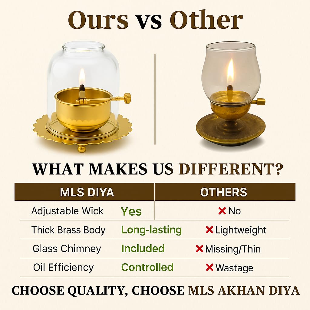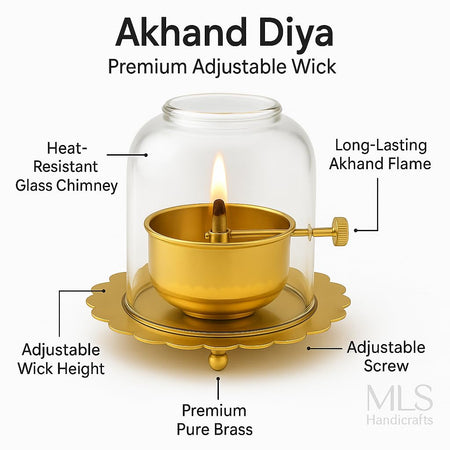 Akhand Diya with Adjustable Wick & Glass Chimney - 30–36 Hr Burn Time