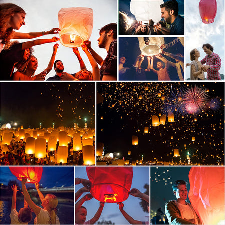 - Sky Lanterns are made from superior quality, flame-retardant paper; Safe and easy to use,100% Biodegradable. The wax fuel lights easily.