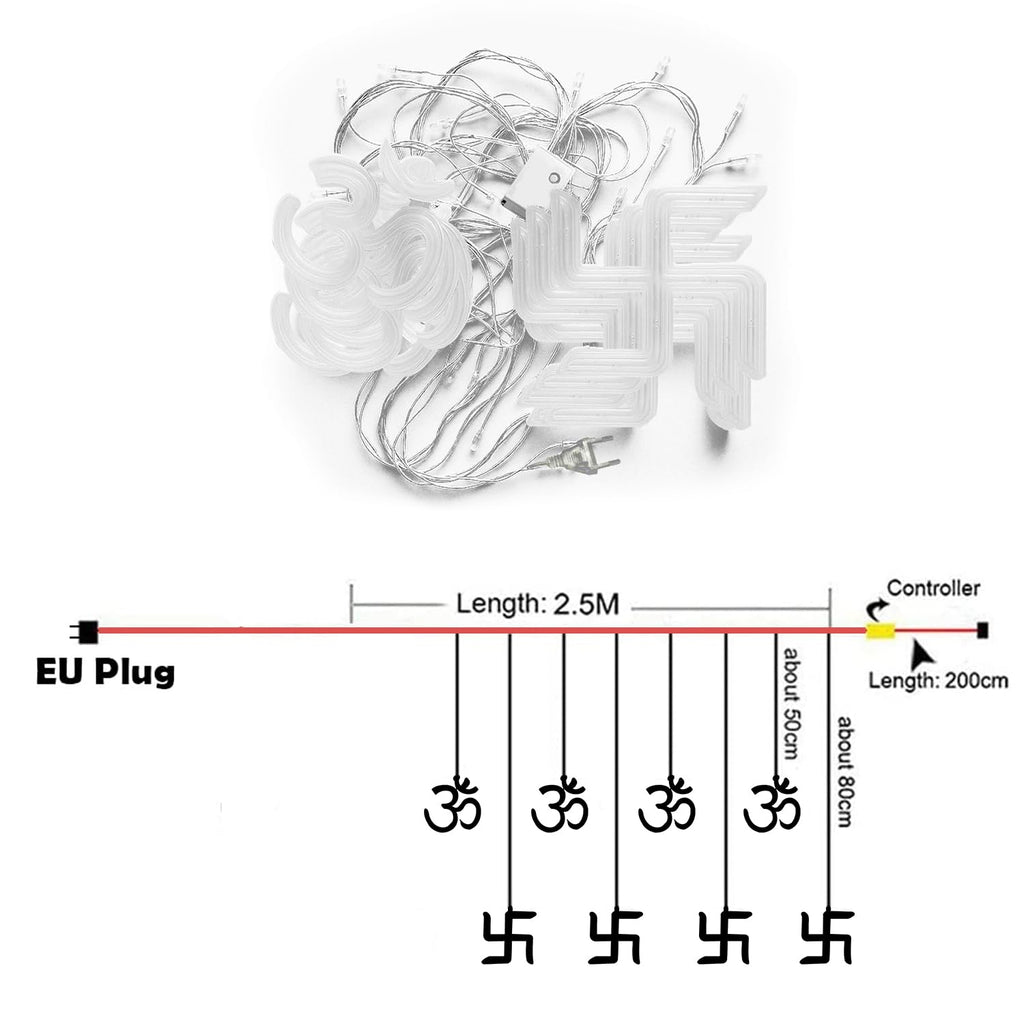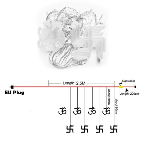 Om and Swastik Lights for Decoration - 12 LED(6+6), 6 Feet Temple Decoration Items
