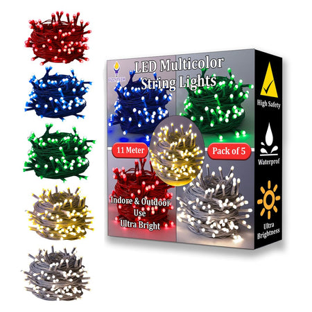 Rice Lights โ 40 LED 11 Meter Decorative String Light | Multicolor Fairy (5 Pack)