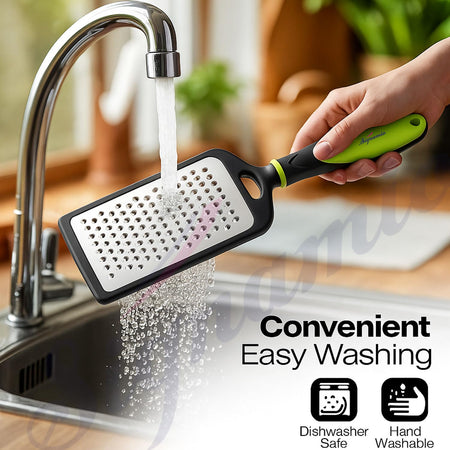 Hand Kadukas Cheese Grater is a must-have, versatile kitchen tool, crafted from premium stainless steel. This grater excels in slicing, shredding, and grating a variety of ingredients, including cheese, vegetables, ginger, and garlic. Featuring a dishwasher-safe design, cleanup is a breeze, making it ideal for busy cooks and small kitchens. For added safety and convenience, the grater includes a sturdy steel cover, providing protection during storage and easy handling while in use. Upgrade your kitchen arsenal with the Signamio Hand Kadukas Cheese Grater, and experience the perfect blend of functionality, durability, and safety.