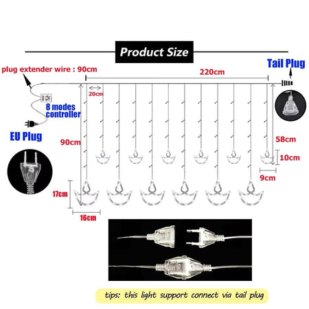 Transform your space with the Star Curtain LED String Lights. Featuring 138 warm white LEDs with 8 flashing modes, these fairy lights create a magical ambiance for any occasion. The flexible copper wire design makes them easy to hang on windows, walls, balconies, or gardens. Perfect for Diwali, festivals, parties, or everyday home décor, they bring a cozy glow and stylish charm to your surroundings.